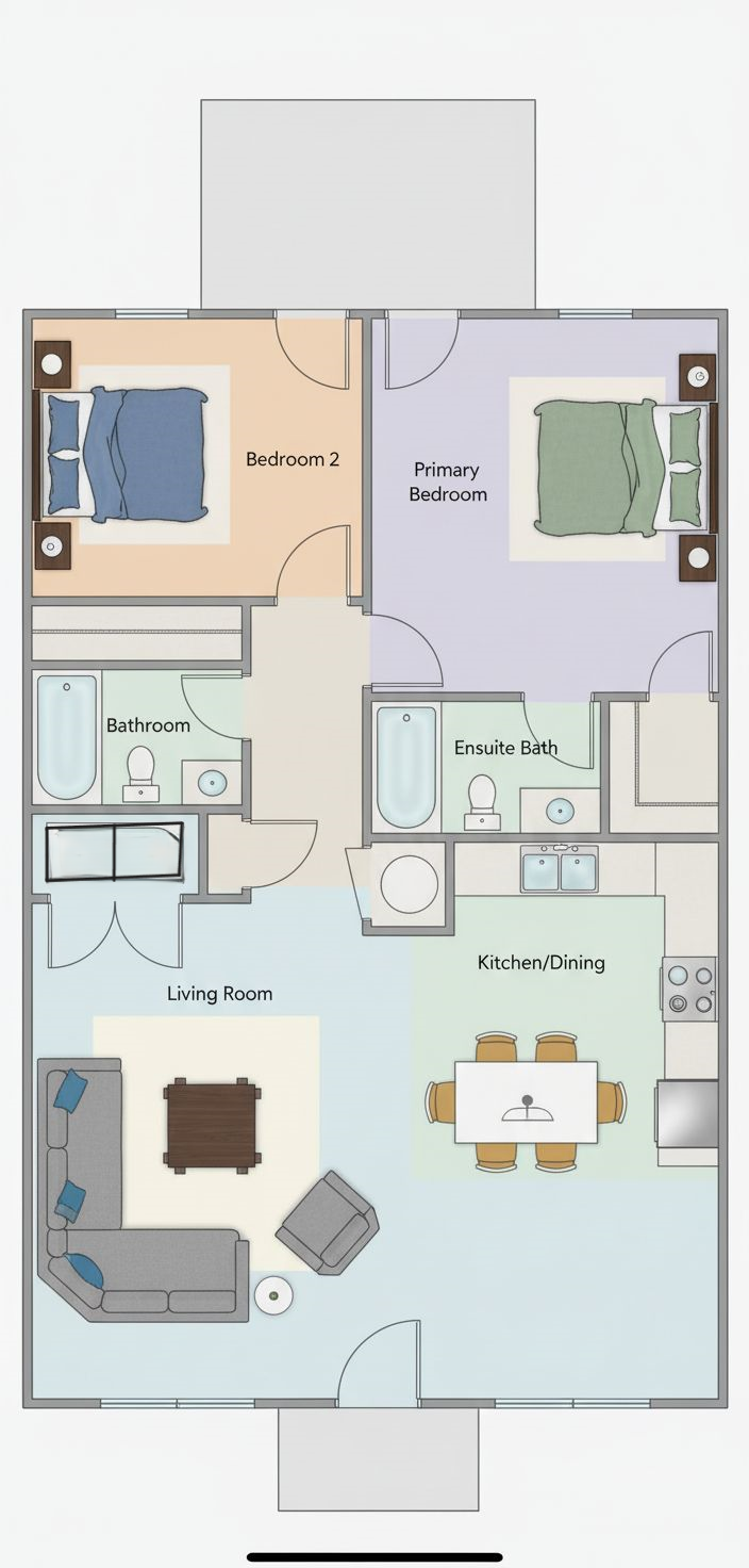 The first option is a single-story building featuring 2 spacious bedrooms and 2 modern bathrooms, this fresh build combines convenience with elegance. Every detail is new from sleek finishes to a versatile color palette designed to complement any style. Construction is expected to be complete by the end of October. Move-in ready by November 1, 2025 (possibly sooner) This home is the perfect blend of modern living and timeless comfort.